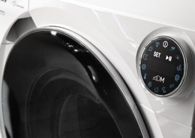 Bianca nasce dal forte desiderio di semplificazione, una semplificazione che tocca tutti gli aspetti del prodotto: semplicità di utilizzo, grazie alla sua interfaccia pulita che presenta una selezione dei progammi più utilizzati, gestibili e personalizzabili da remoto sul proprio smartphone e pulizia formale, il design è nella sua semplicità estremamente innovativo, attraverso uno smusso dalla profondità variabile si ricava non solo un caratteristico tratto estetico, ma una soluzione integrata che nasconde estrambe le maniglie.