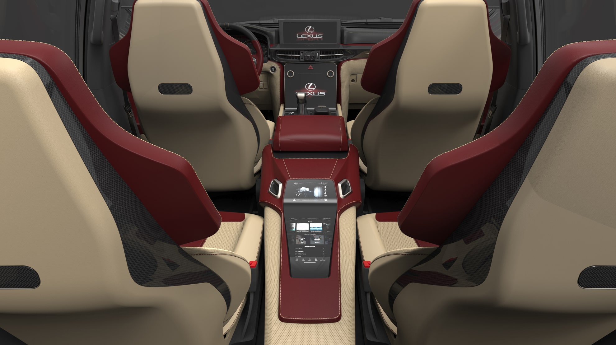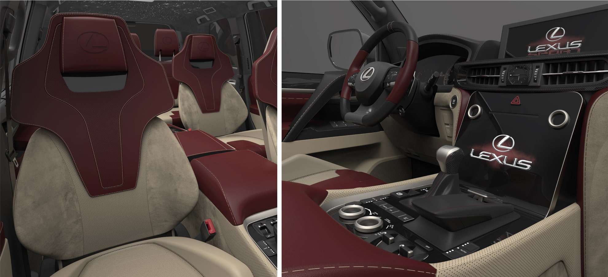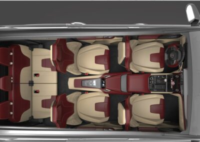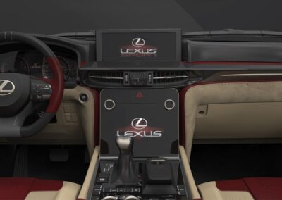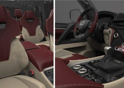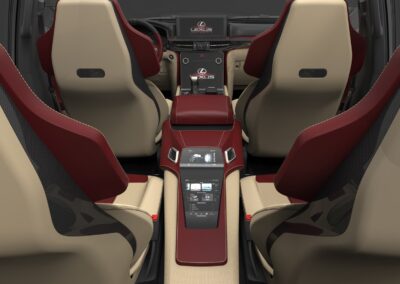 Personalizzazione sportiva di lusso dell’interno di un suv 7 posti marchiato Lexus, pensato specificatamente per il mercato arabo. Partendo da uno progetto di produzione gli interventi hanno interessato principalmente sedili, dashboard, e consolle centrale.