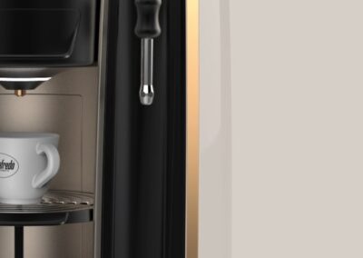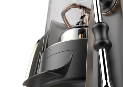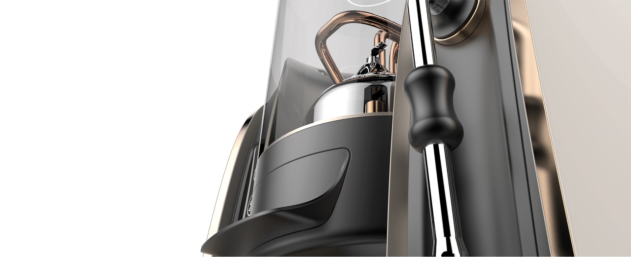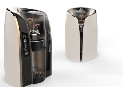 Pensata per un mercato di lusso, Scrigno vuole essere l’esaltazione e la spettacolarizzazione dell’erogazione del caffe. Grazie ad un sistema di erogazione pensato per le macchine professionali da bar si portano le elevate prestazioni all’interno di una macchina domestica.